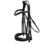 With the double bridle BARCELONA by Schockemöhle Sports you will definitelyhave everyone’s eyes on you! The wide combined crank noseband and the curvedbrowband with big crystal rivets create a certain “wow effect”. Aslightly shaped and softly padded head piece as well as the back pads and theround shaped rings at the sides of the noseband ensure, that this bridle is notonly visually striking but also offers a lot of wearing comfort for yourhorse.