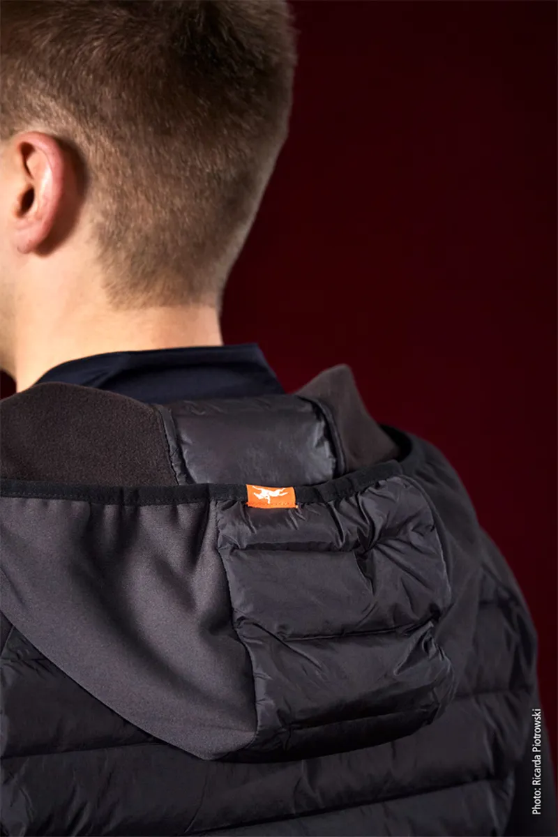 The perfect training jacket for all days when there is no shirt weather yet!Drake is a lightweight men’s hybrid jacket from Schockemöhle Sports, whichin a modern, sporty look also inspires with its functional details. Thefront and back of the hybrid jacket are quilted with Dupont filling, thestand-up collar is padded. The sleeves and side panels, on the other hand,are made of soft jersey. The quilted hood of the jacket can be removed inno time. From fresh breezes protects the elastic waistband at the hem andcuffs. The horse logo on the front and the rubber badge on the left sleeveround off the overall look.