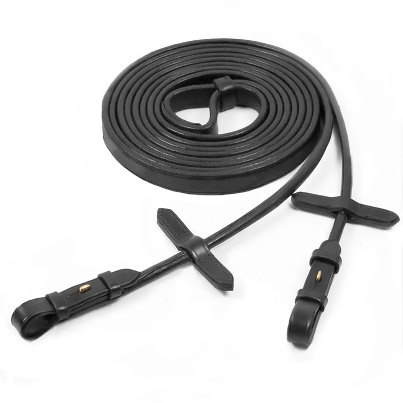 Schockemohle Leather Double Bridle Rolled Reins Black-Gold