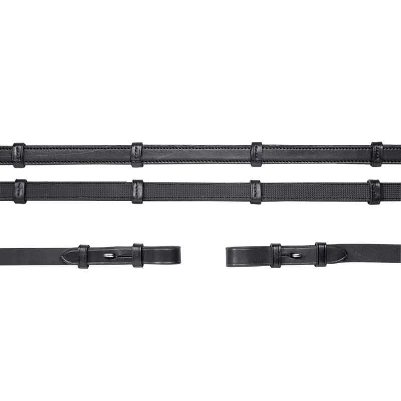 The BRIDLE REINS with hook & stud are made out of high-quality leatherand have incorporated leather stoppers. Exceptionally slip-proof due tothe rubberised back.