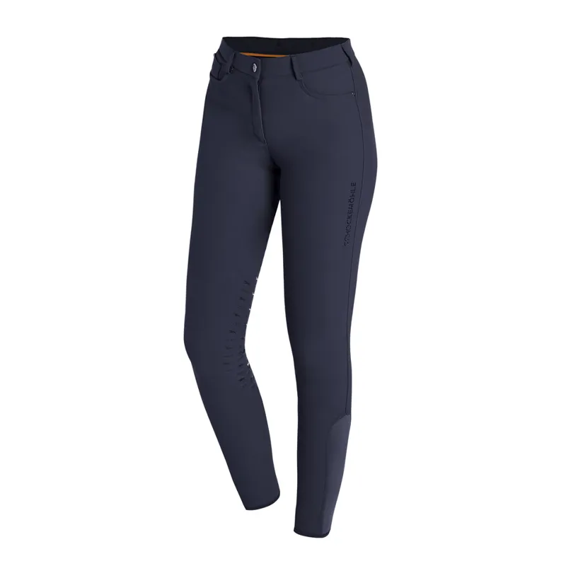 Breathable, flexable and nevertheless stable in form: the ladies breechesLivia KG by Schockemöhle Sports convinces with maximum functionality. Thestretch fabric is moisture wicking and offers UV protection. Also useful:the round pockets with an additional small coin pocket. The Knee gripensures good support in the saddle. A rhinestone logo on the left leg andfake pockets decorated with a glitter tape at the back let sporty ridersshine!