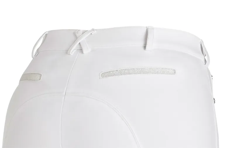 Breathable, flexable and nevertheless stable in form: the ladies breechesLivia KG by Schockemöhle Sports convinces with maximum functionality. Thestretch fabric is moisture wicking and offers UV protection. Also useful:the round pockets with an additional small coin pocket. The Knee gripensures good support in the saddle. A rhinestone logo on the left leg andfake pockets decorated with a glitter tape at the back let sporty ridersshine!