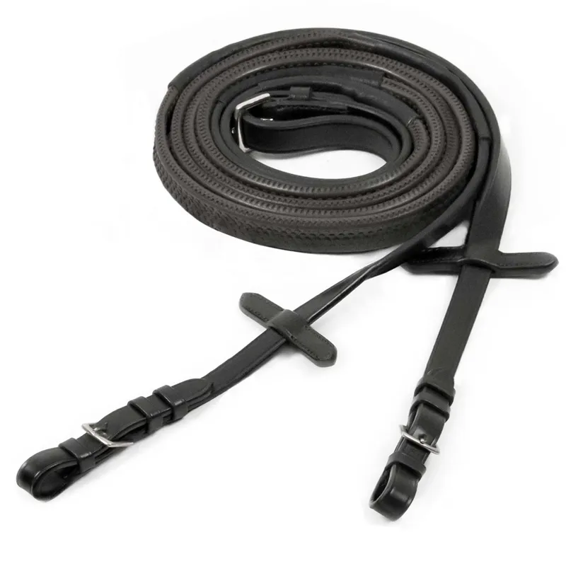 The NEO RUBBER REINS with buckles match all bridles of the NEO LINE. Thereins have martingale stops at the leather ends and are made out of a17 mm wide, non-slip rubber material.