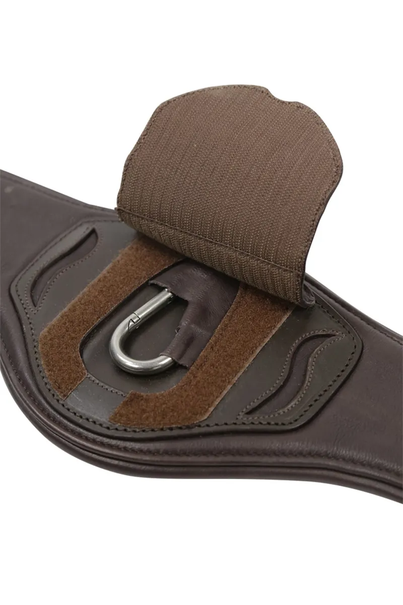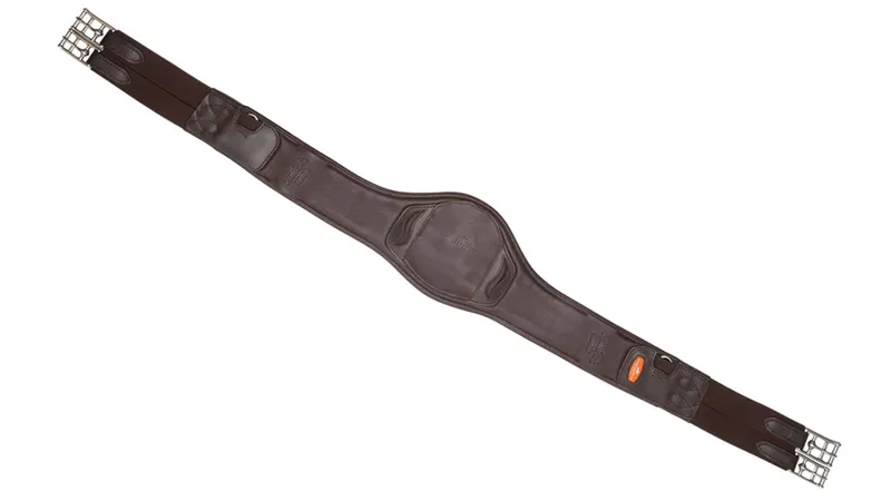 Portland is a new, anatomically cut long girth from Schockemöhle Sports. The flat part of the girth in the area of the horse’s elbows allows maximum freedom of movement. In addition, the wider, some what firmer middle section of the girth now distributes the pressure on the chest evenbetter. The Portland long girth is made of grained soft leather and has alarge carabiner in the middle, which makes it easier to buckle in the breastplate. For even more security, the carabiner can be covered with thelarge leather flap. Two side D-rings offer even more options for bucklingauxiliary reins. Available in black/silver and brown/silver, the girth comes with tripple-fold elastic on both sides and solid roller buckles with soft padding.