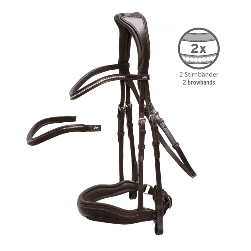 - equipped with two browbands: one simple leather browband and one with slimcrystal chain