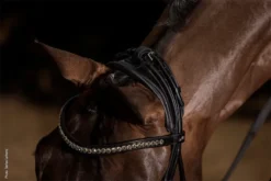 - innovative headpiece that optimally positions the straps of the cheekpiecesand the noseband strap